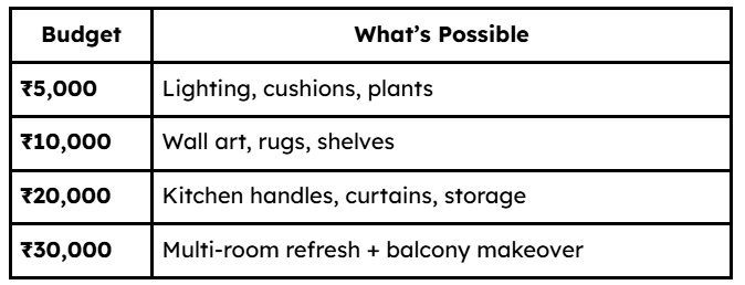 This guide gives you simple, affordable ways to upgrade your home — perfect for 1BHK and 2BHK flats on a tight budget.