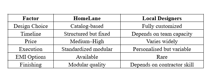 Comparison: HomeLane vs Local Mumbai Designers (Neutral View)
